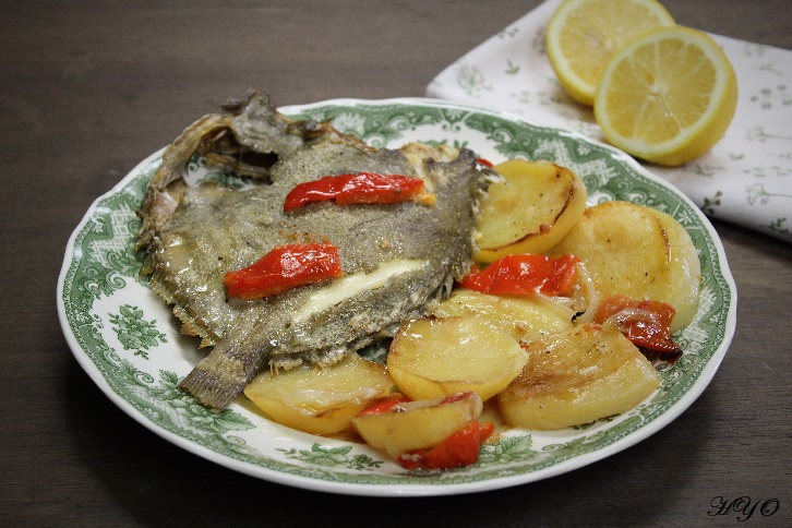 Una de nuestras especialidades, San Martín al Horno con patata panadera
